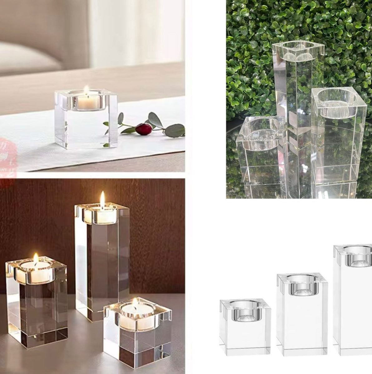 3pc square glass candle holder!